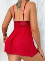 Lace & Mesh Contrast Halter Neck Babydoll Lingerie Dress