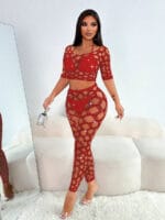 Be the first to review “Sleeveless Halter Tie Blouse And Hollow Out Long Pants Mesh Set(2pcs)”